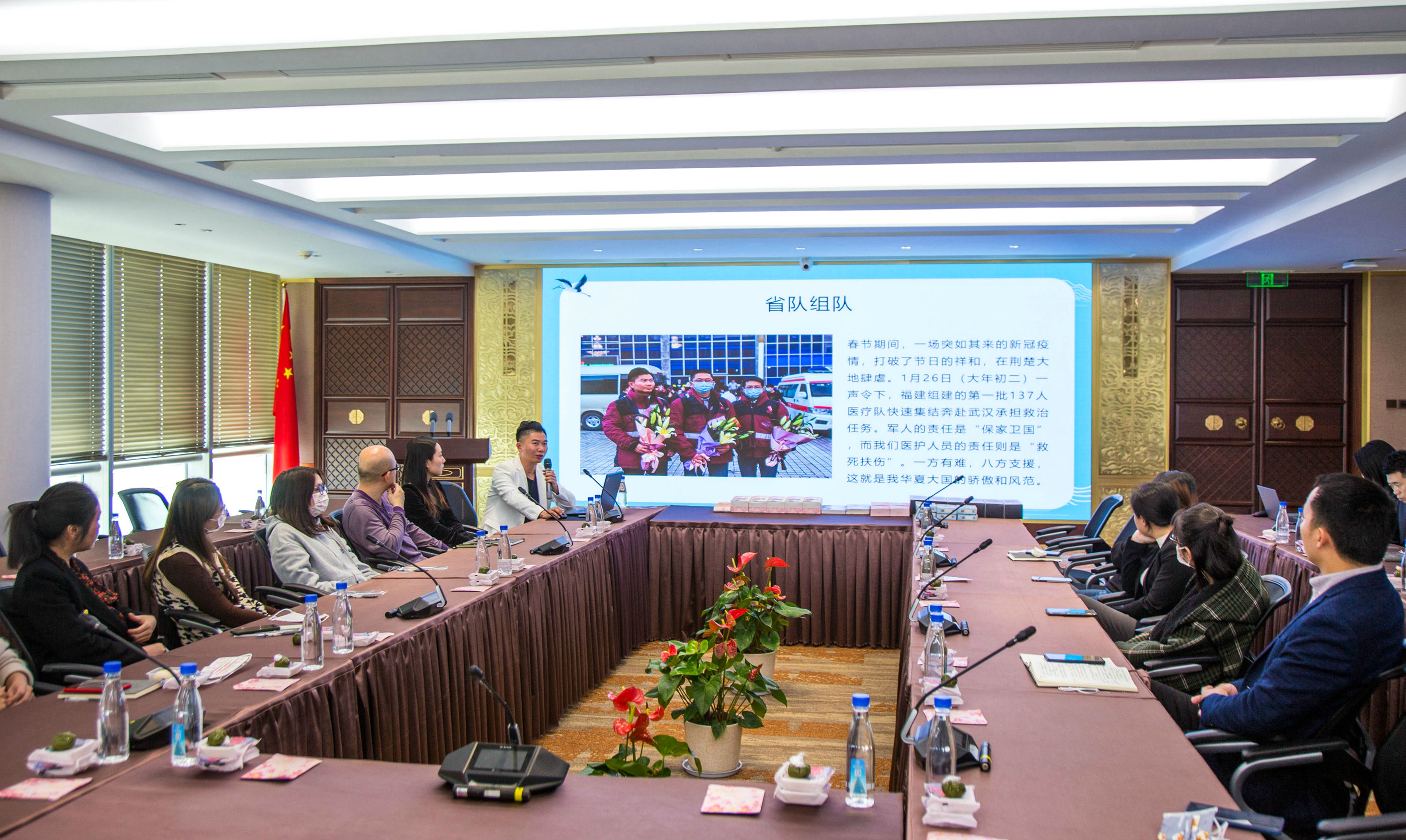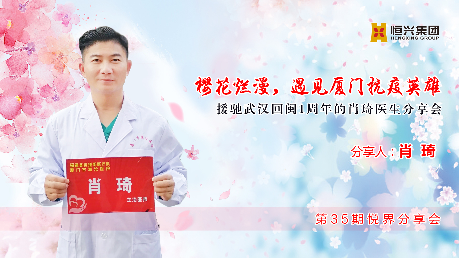昨日(3月24日)下午,恒興集團(tuán)舉辦第35期悅界分享會(huì),主題為“櫻花爛漫,遇見(jiàn)廈門抗疫英雄——援馳武漢回閩1周年的肖琦醫(yī)生分享會(huì)”。當(dāng)天下午,肖琦準(zhǔn)時(shí)現(xiàn)身恒興集團(tuán),員工在42樓前臺(tái)送上代表陽(yáng)光幸福的花束。稍事休息,肖琦便開啟了他的抗疫經(jīng)歷分享。