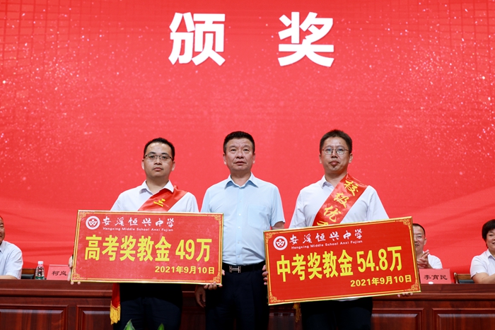 當(dāng)天下午3點,恒興中學(xué)鐵錚大禮堂座無虛席,伴隨著莊嚴的國歌聲,慶祝教師節(jié)暨表彰大會拉開序幕。大會表彰了2020-2021學(xué)年度“三十佳教師”、“優(yōu)秀教師”、“優(yōu)秀班主任”、“優(yōu)秀員工”、“優(yōu)秀共產(chǎn)黨員”,校董會頒發(fā)了中高考獎教金。